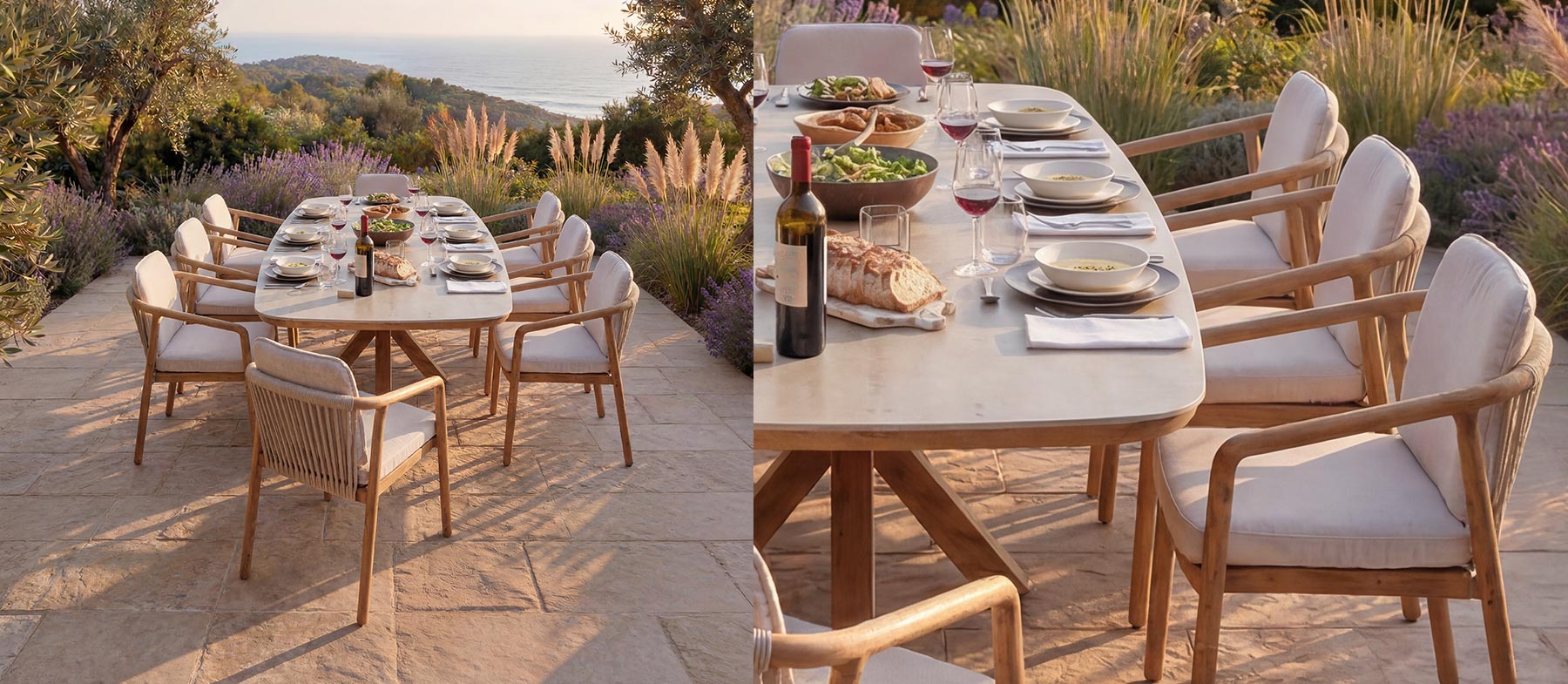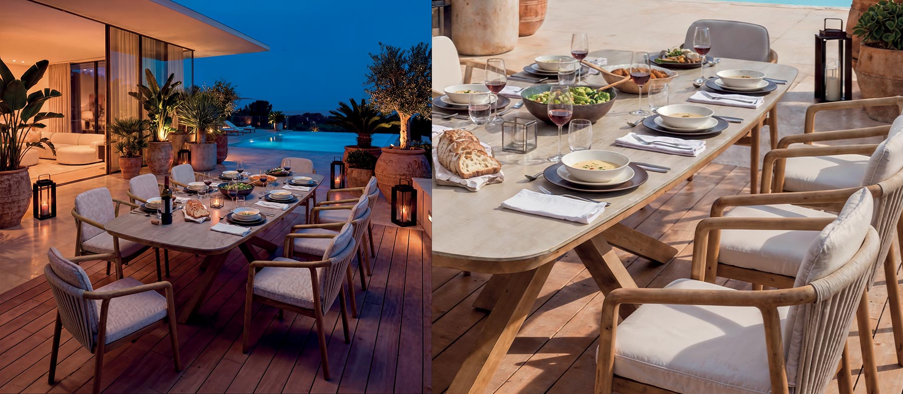 Découvrez notre large gamme de mobilier en bois massif : teck, frêne, chêne, pin...