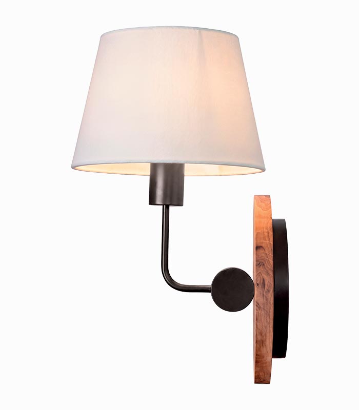 Applique en teck recyclé et métal noir avec abat-jour coloris blanc