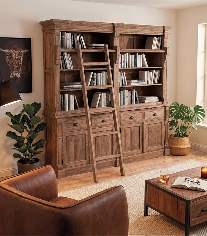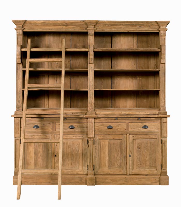 Bibliothèque TRINIDAD en teck recyclé et design colonial.