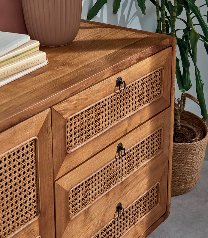Bahut teck massif CARAWA 2 portes 3 tiroirs