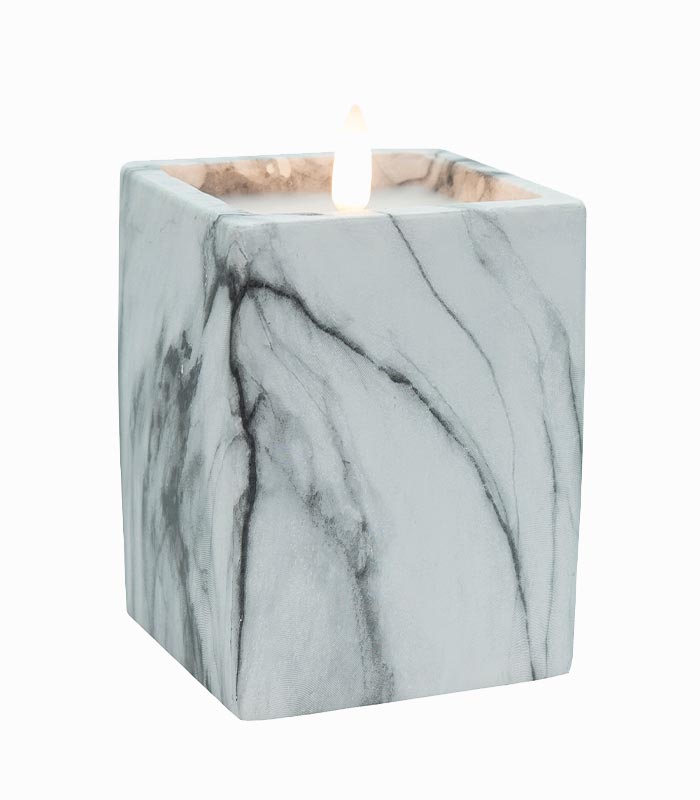 Bougie LED rectangulaire façon marbre en cire et PVC, flamme 3D, lumière vacillante, blanc chaud