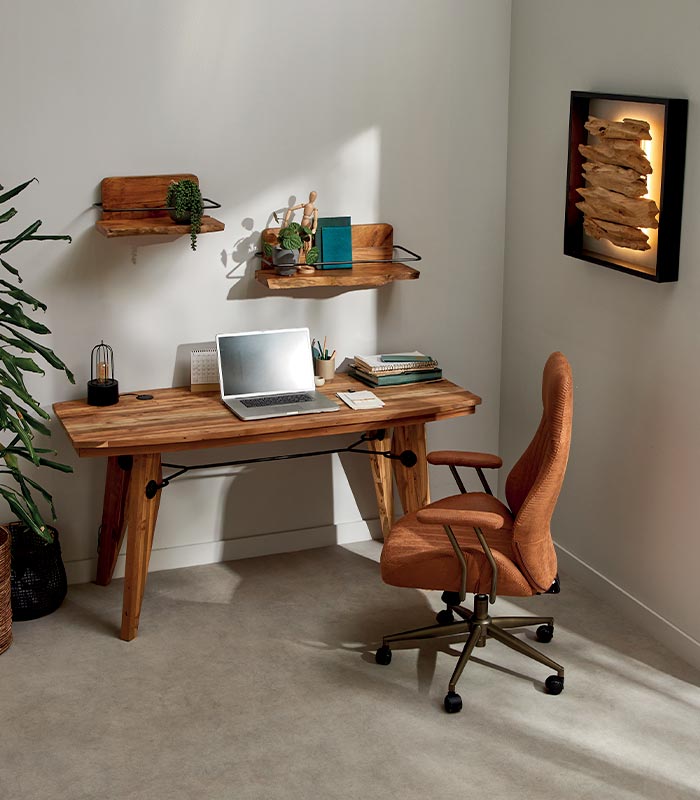 Nos bureaux en bois massif se déclinent en une variété de tailles, de styles et de fonctionnalités pour créer un espace de travail confortable et fonctionnel à domicile. Optez pour un bureau simple et épuré pour un espace de travail minimaliste ou choisissez un bureau avec des rangements intégrés pour une organisation optimale.