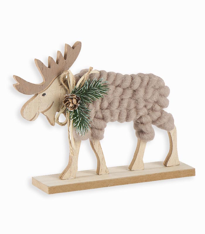 Mobilier bois massif Noël Déco à poser de Noël Caribou décoratif en bois et laine marron