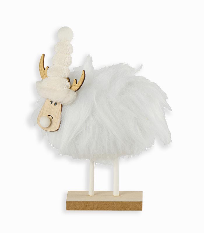Mobilier bois massif Noël Déco à poser de Noël Cerf fourrure et bonnet blanc