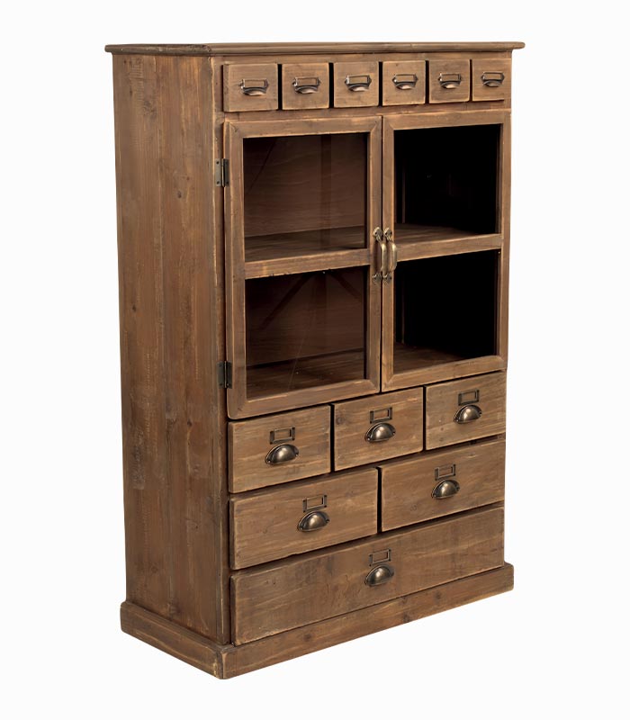 Inspirée des vieilles commodes vintage en sapin massif, cette commode possède un style apothicaire qui trouvera une place de choix dans votre décoration d’intérieur.
