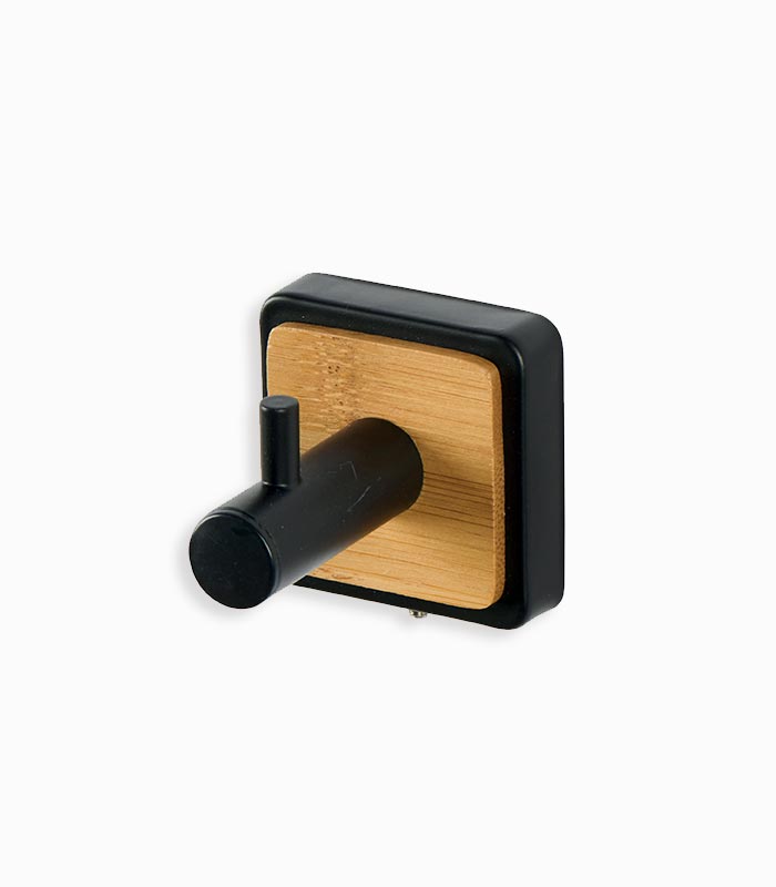 Mobilier bois massif Décoration Accessoires de salle de bain Accessoires Porte-serviette Crochet métal noir et bambou