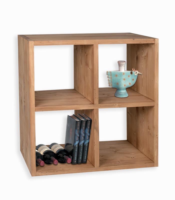 Etagère cube pin massif ciré 4 cases MALMOE