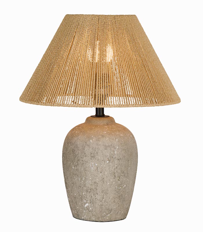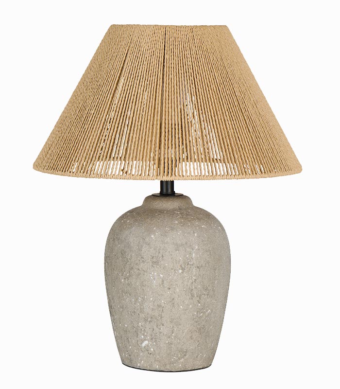 Lampe en poterie grise et abat-jour en corde