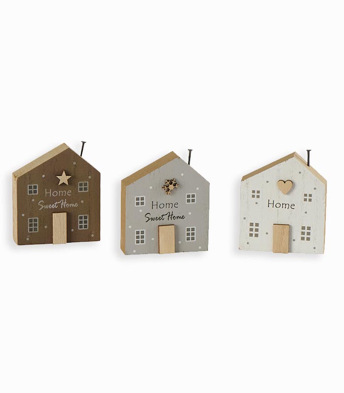 Maisonnette en bois à poser 3 assortis gris/blanc/marron « home sweet home »