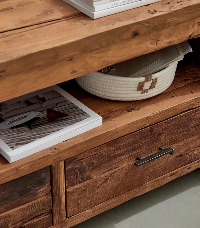 Meuble TV teck recyclé 3 tiroirs VANCOUVER
