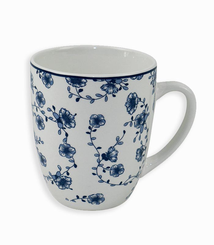 Mug en porcelaine, coloris banc avec fleurs bleues.