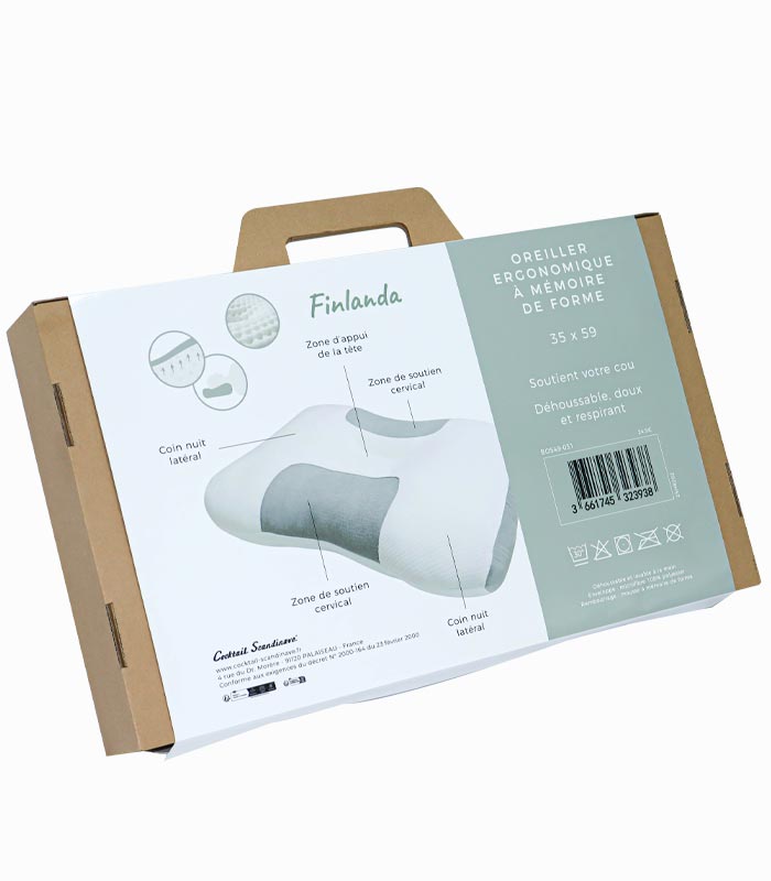 Oreiller ergonomique à mémoire de forme, zone de soutien cervical.