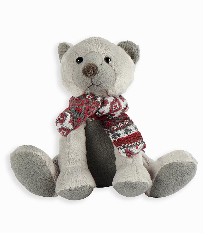 Ours gris de 21 cm avec écharpe marine/rouge/blanc/beige