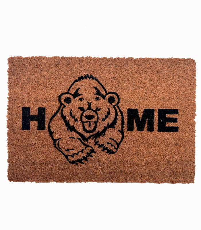 Paillasson en fibre de coco et PVC, coloris naturel avec ours et typo HOME.