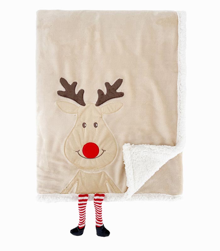 Plaid beige avec cerf dans l’esprit de Noël.