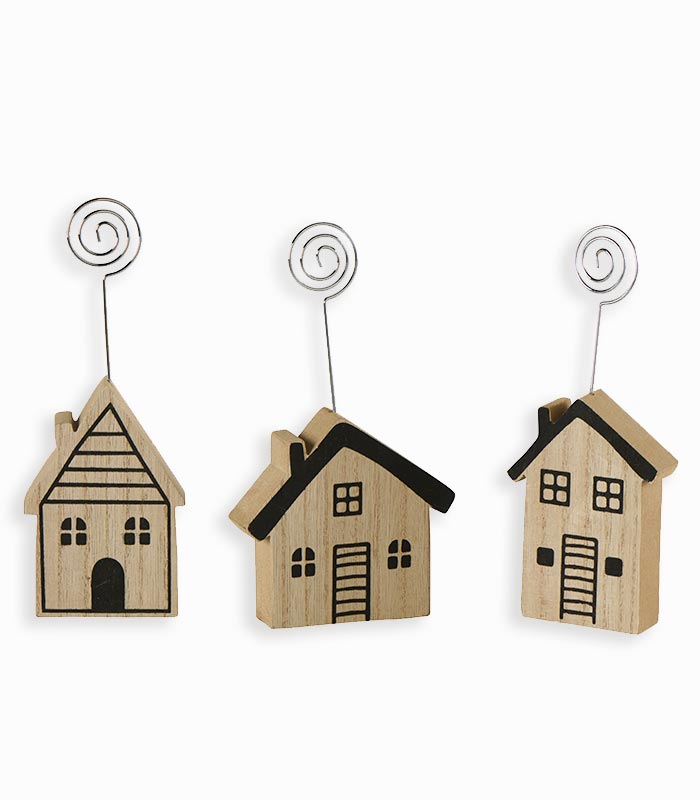 Porte-photo maisonnette en bois 3 assortis avec spirale en métal argenté