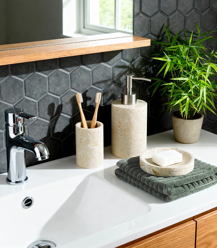 Mobilier bois massif Décoration Accessoires de salle de bain Accessoires Porte-savon Porte-savon façon marbre rose