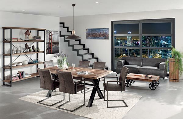 Le mobilier ATELIER en bois et métal. Le style indus de cette coolection n’est pas près de passer de mode. L’alliance des matières brutes qui donnent un sacré caractère aux intérieurs qui adoptent cette tendance..