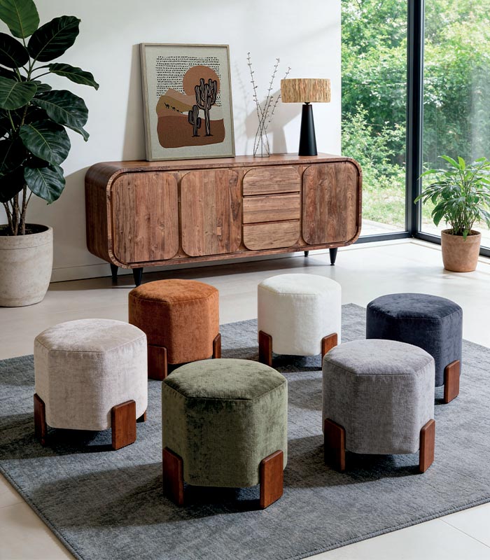 Faites de votre intérieur un véritable havre de confort et de design avec des poufs et des tabourets uniques.