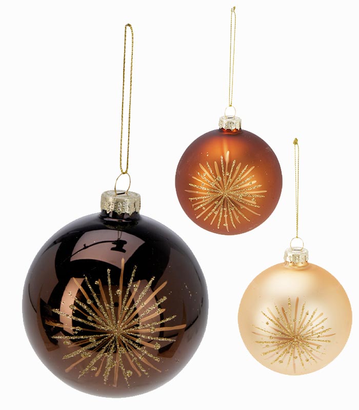 Chaque boule dans les tons orangés, dorés, rouges et verts capte la lumière de manière unique offrant des reflets délicats et précieux.