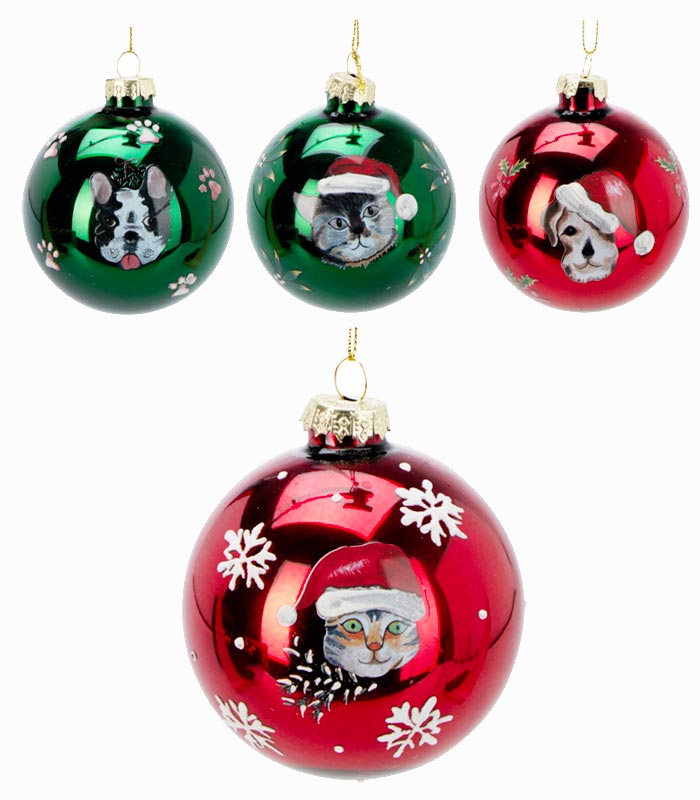 Boule de Noël avec chats ou chiens et flocons à suspendre
