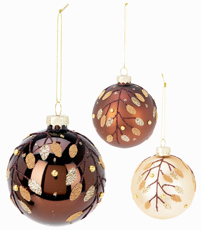 Chaque boule dans les tons orangés, dorés, rouges et verts capte la lumière de manière unique offrant des reflets délicats et précieux.