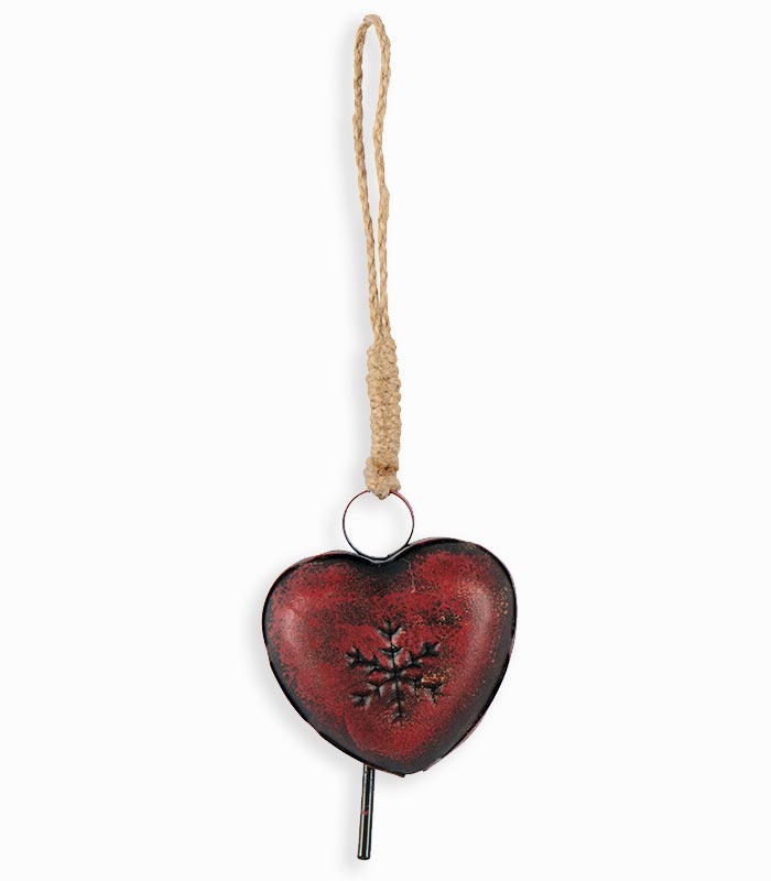 Suspension en forme de coeur rouge en métal avec flocon gravé