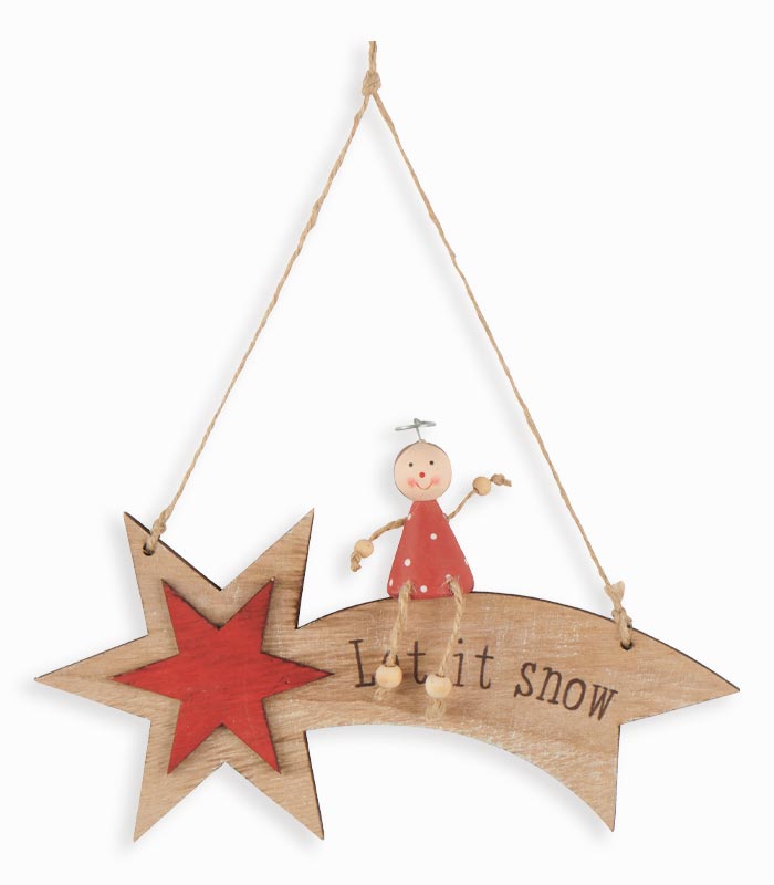 Etoile filante « Let it snow » avec ange et étoile rouge à suspendre