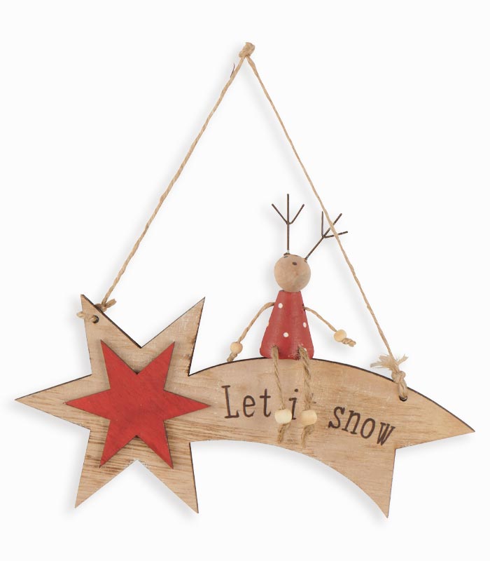 Etoile filante « Let it snow » avec renne et étoile rouge à suspendre