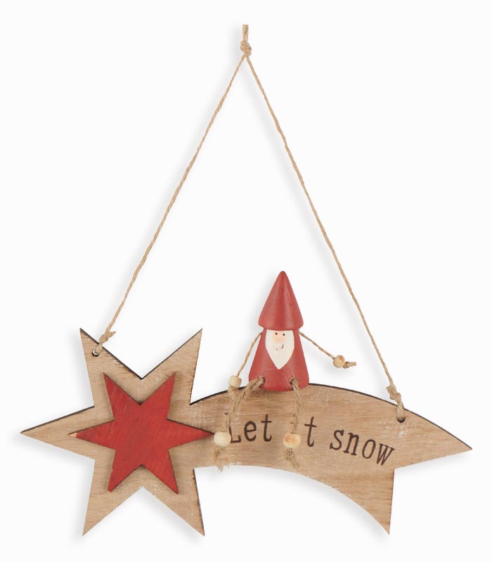 Etoile filante « Let it snow » avec Père Noël et étoile rouge à suspendre