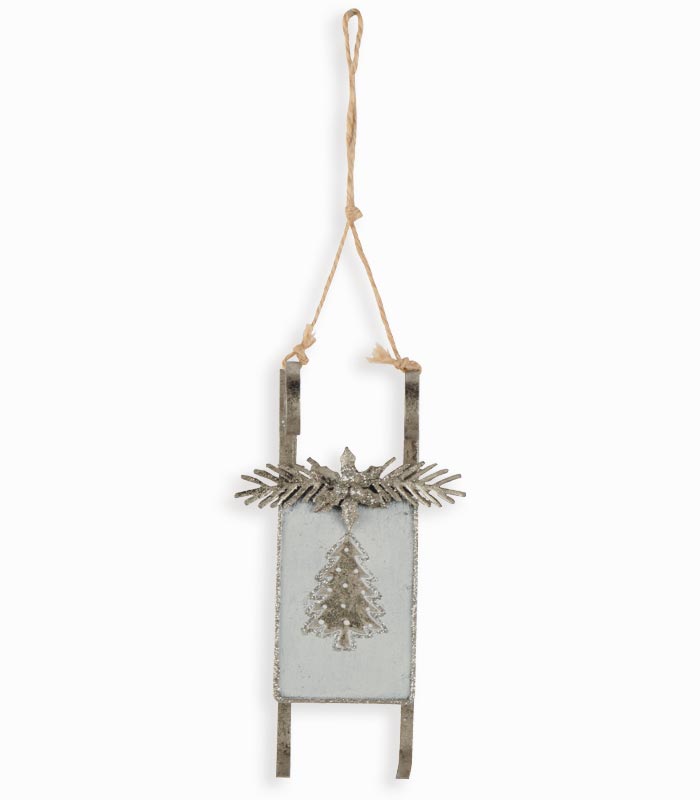 Suspension Luge argentée motif sapin et branchage avec edelweiss
