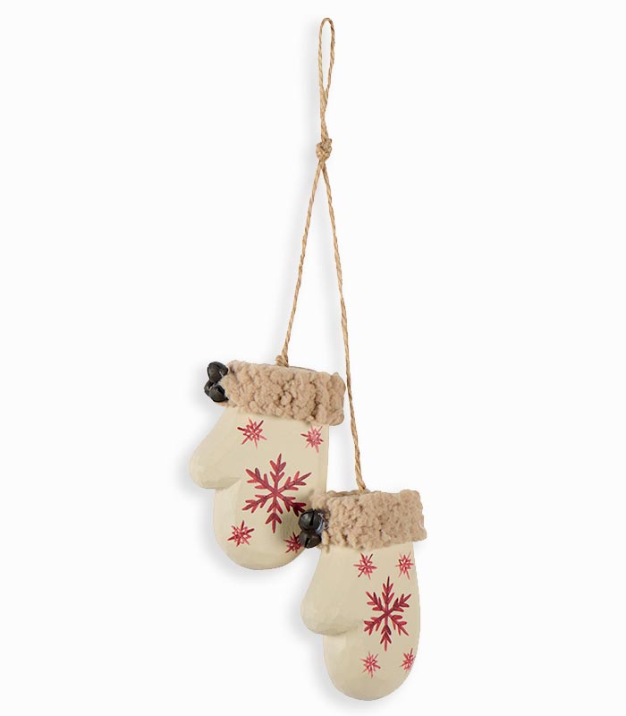 Suspension moufles blanches avec flocons rouges, bords Sherpa
