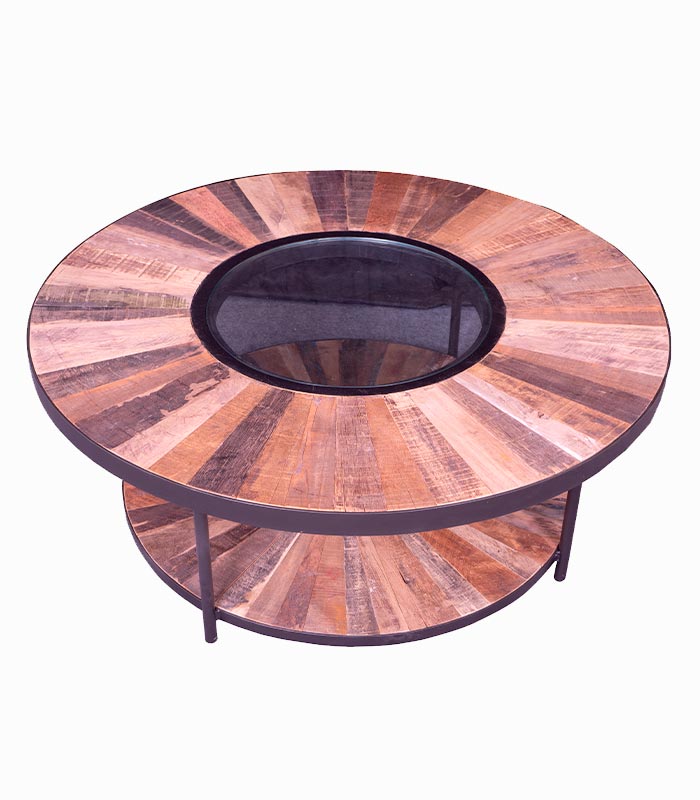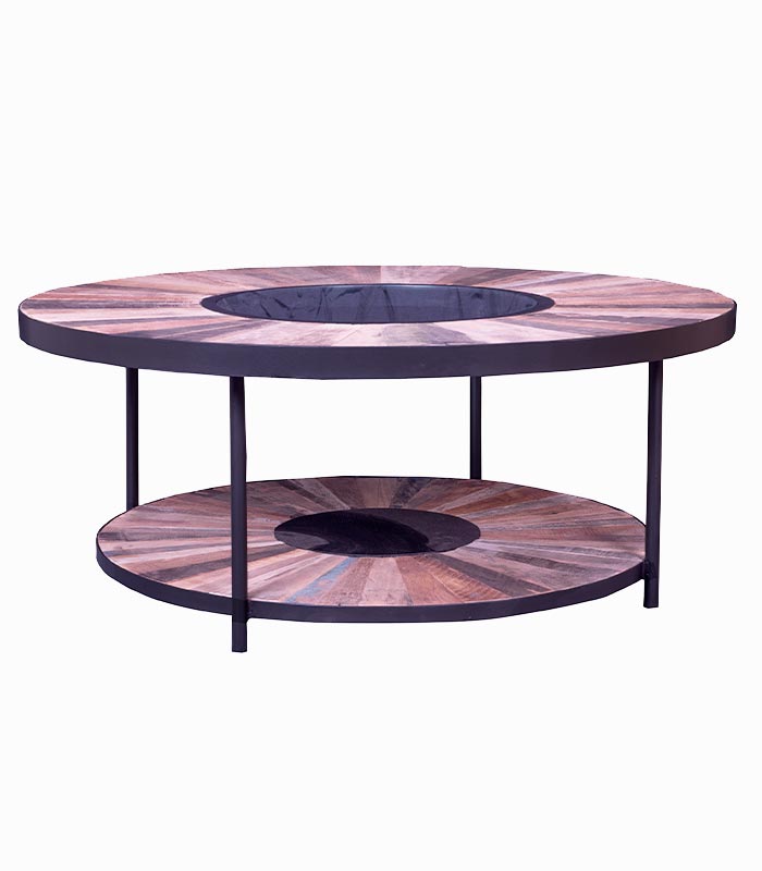 Table basse bois de bateau BADU double plateau Ø 100 cm