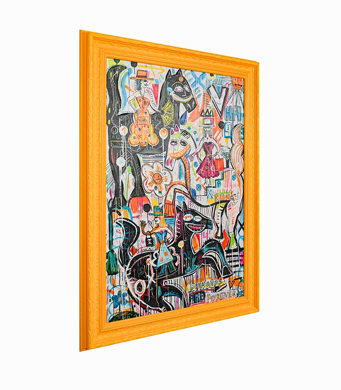 Toile peinte à la main sur la thématique du monde de l’équitation. Ce tableau est réalisé par l’artiste Européenne Mercedes LAGUNAS.