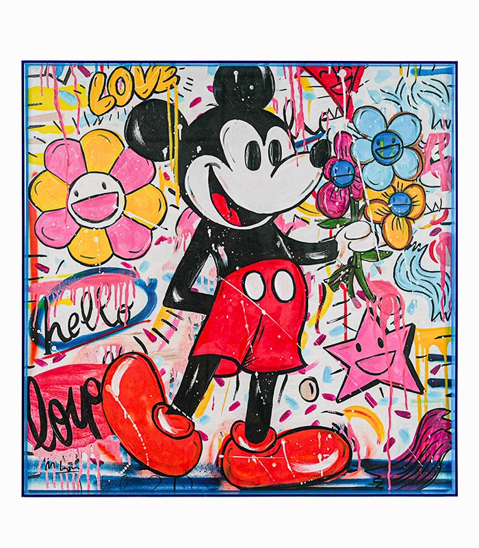 Toile peinte à la main sur la thématique de Mickey Mouse. Ce tableau est réalisé par l’artiste Européenne Mercedes LAGUNAS.