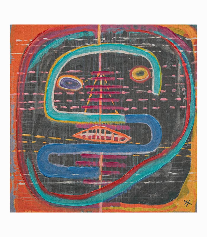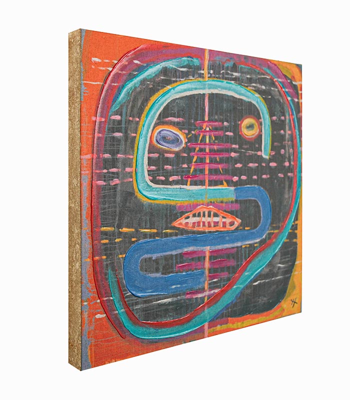 Toile abstraite peinte à la main avec bordure en feuille d’or. Ce tableau est réalisé par l’artiste Danois Hans PETERSEN.